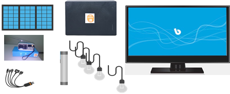 Vous choisissez parmi 2 offres selon vos besoins. Toutes les offres comprennent de base une unité centrale, + 1 panneau solaire + des ampoules LED + 1 radio+ 1 TV LED + 1 chargeur de téléphones + câbles